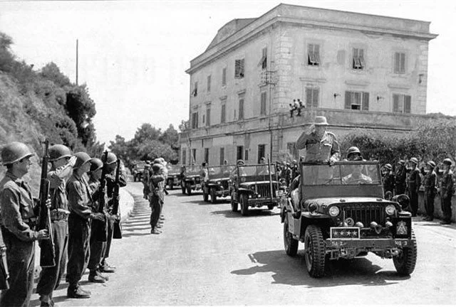 Winston Chuchill entering Castiglioncello with Allies, August 1944