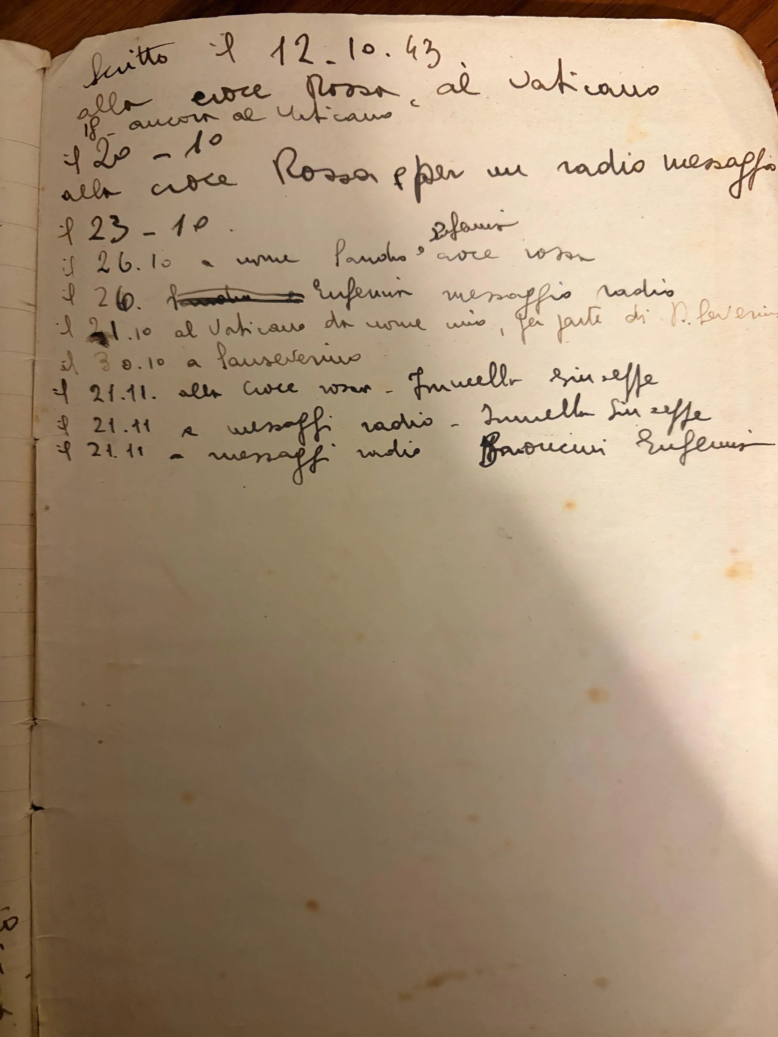 [Così si conclude il primo diario di Nonna, con la pagina finale riportante la cronologia di tutti i contatti fatti tra Ottobre e Novembre alla Croce Rossa e al Vaticano, foto qui sotto].