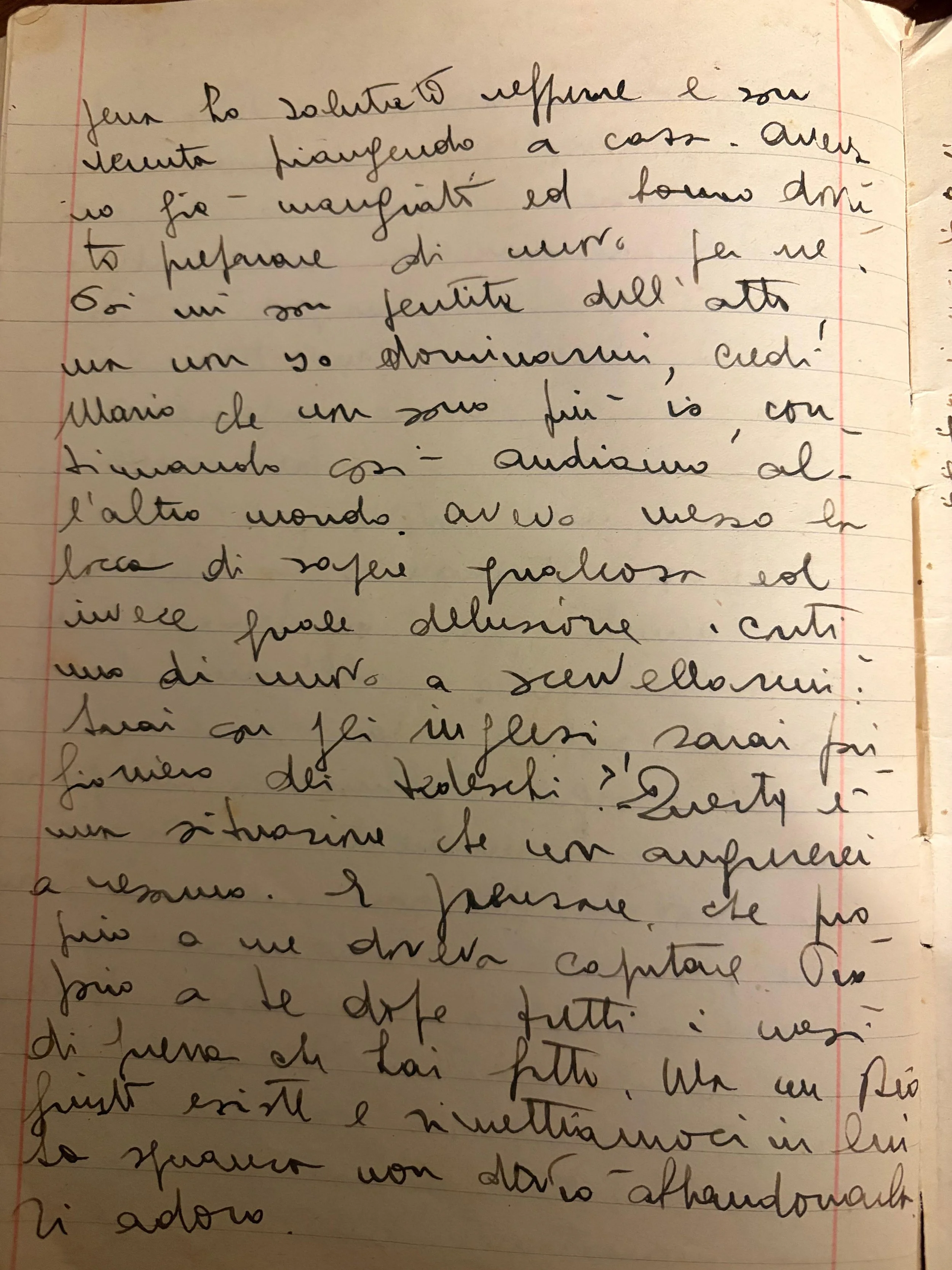 I had set my heart on learning something, and instead, what a delusion. Once again I rack my brain: are you with the British, are you a prisoner of the Germans? This is a situation I would not wish on anyone. And to think it had to happen to me. To you, after all the months of war you endured. But, if God does exist, let us place ourselves in His hands, because I must not abandon hope.