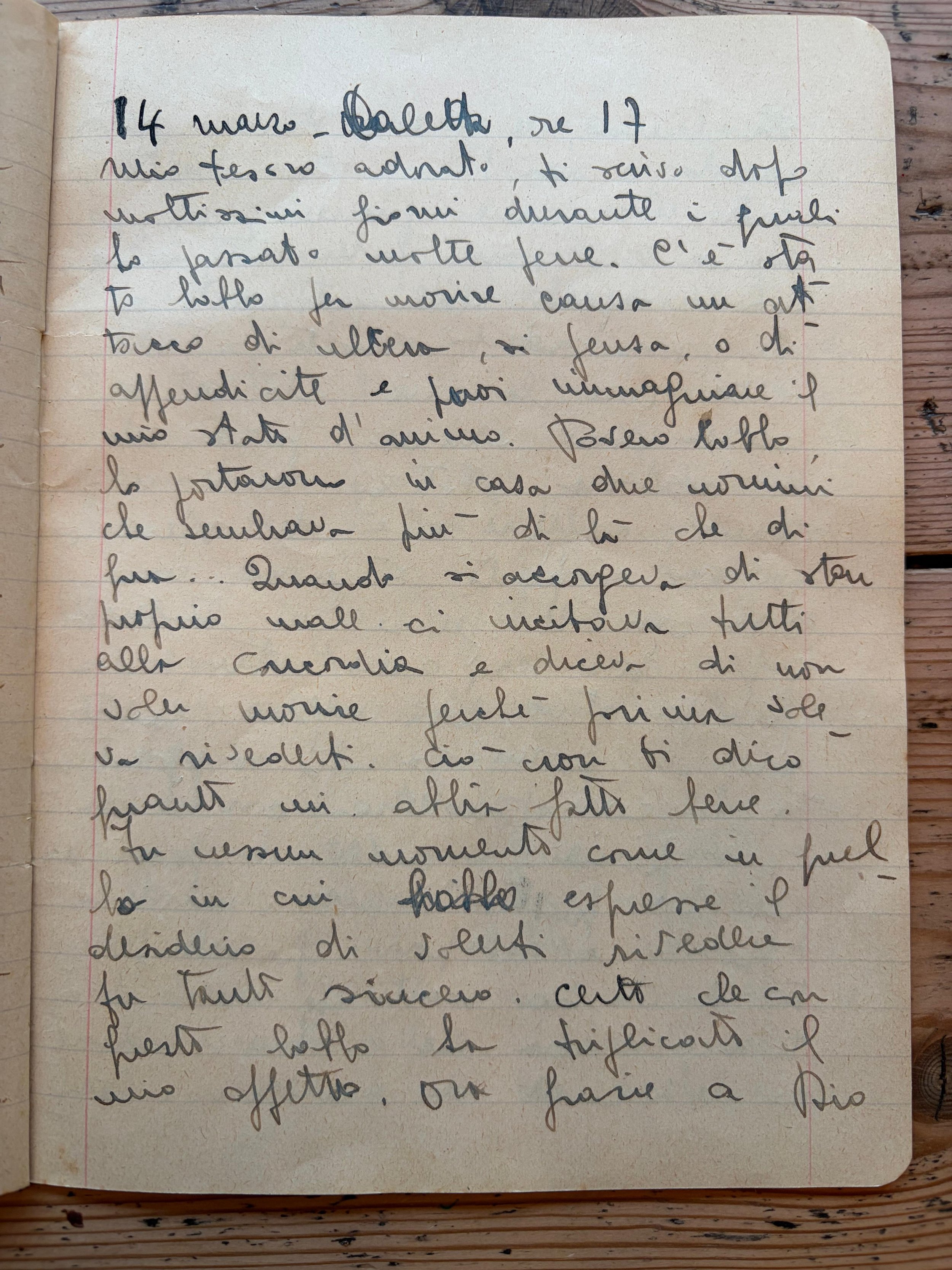DIARIO 2. 14 Marzo 1944, 5pm. “Spegnendomi poco a poco”